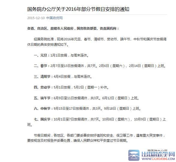 以下是小编关于2016节假日放假安排的预测版,欢迎对比分析。