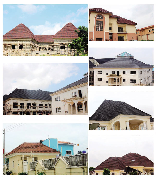 彩石金属瓦适用于各类坡屋顶建筑的屋面铺装和各类建筑的局部装饰,特别是适用于别墅、中高档住宅、大型商场图书馆、博物馆和学校医院政府机关和企事业单位办公楼,也非常适用于平改坡和旧屋面翻新工程。