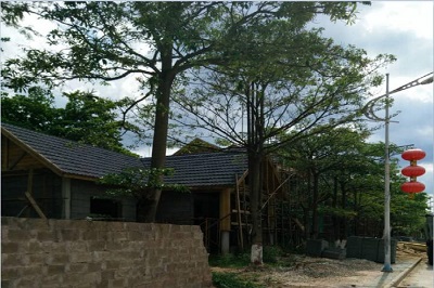 采用瓦型:木纹型彩石金属瓦。 瓦片用量:4000多方。 屋面结构:木结构屋面。 瓦片颜色:深海蓝。参考报...
